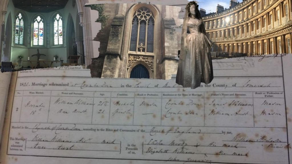 It was in this very church that my great great great grandparents, Ann Aust and William Williams married. Their union way back in 1838 eventually resulted in my birth. As I look at the register I see they couldn't write - signing their names with only 'X'. They were uneducated masons working in the quarries of Bath; part of the poor masses working for the rich socialite class.