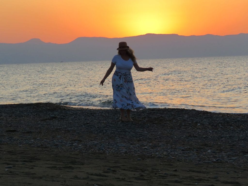 Inspired by Mara’s story, I decided to go to the beach and dance before the sunset. I let myself go, dancing to the sound of the water lapping at the shore. I spun around floating in the breeze, my skirt brushing against my legs. I laughed out loud, delighted UNTIL …